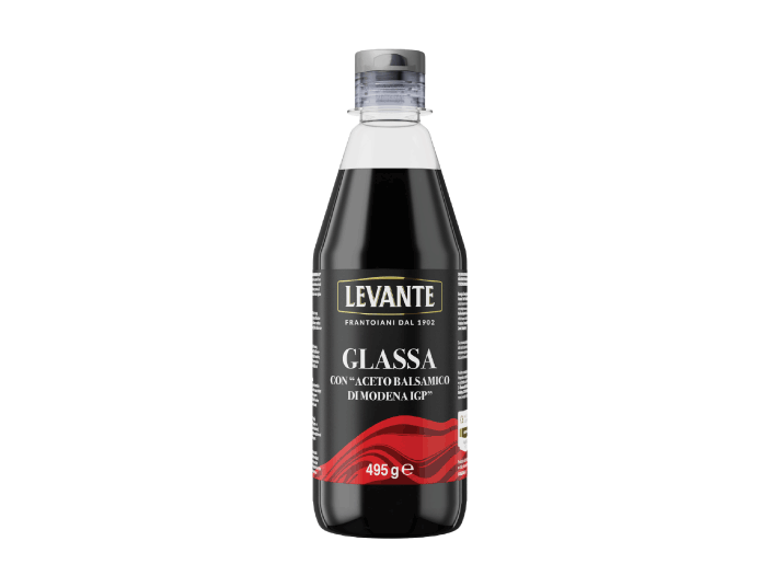 Levante Balsamic Vinegar Glaze is a dense, soft, creamy sauce that encapsulates the entire tradition of Balsamic Vinegar of Modena IGP. Extremely delicately balanced, it is perfect for adding drops of refinement to even the simplest recipes. Its exclusive dense consistency is guaranteed by the careful blend of grape must cooked with Balsamic Vinegar of Modena IGP. With a sweet and sour flavor, it is tasty on all dishes, sweet and savory, for seasoning and decorating. It pairs well with salads and vegetables, risottos, cheeses, and grilled meat, all the way to fruit salads, desserts, ice cream, and fruit.