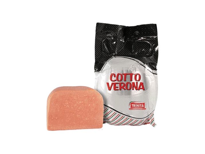 Cooked meat based on recomposed meat obtained from fresh minced pork salted and flavoured in brine and steamed. The meat used comes from EC countries. The product has the typical flavour of slightly spiced cooked meat. The product is available in whole or half bag format and vacuum-packed in double wrapping (hygienic film + aluminium bag).