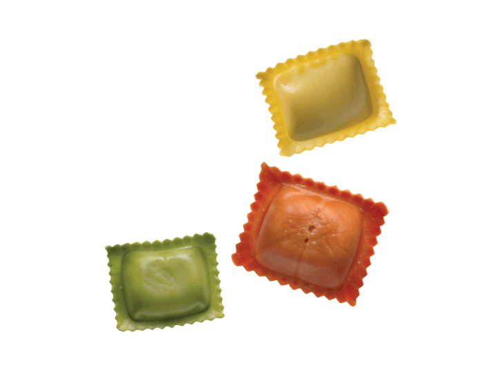 R11 Green raviolacci with avocado, buffalo cream and cherry tomatoes